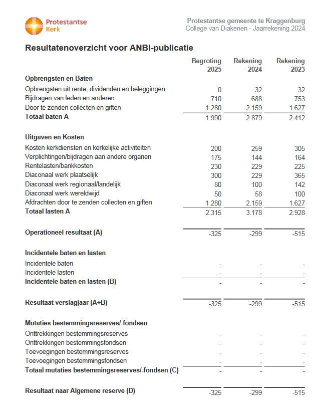 RSIN: Het RSIN/Fiscaal nummer van de diaconie van de Protestantse gemeente te Kraggenburg is: 824132841